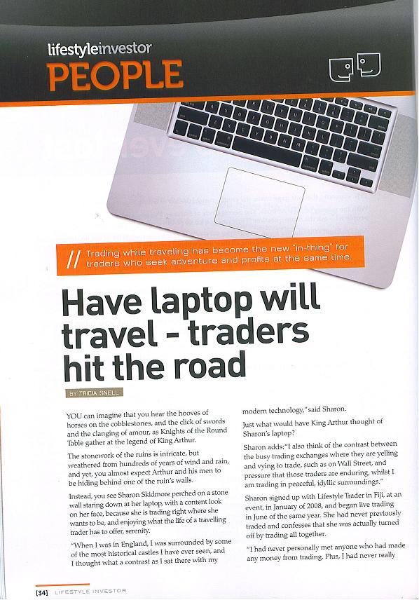 Reference – Lifestyle Education Group (2009) Have Laptop will Travel – Traders Hit the Road, Lifestyle Investor Magazine Vol. 1.1 July/ August 2009, pp. 34-37, Wallburg Developments Pty Ltd and the Lifestyle Education Group, QLD, Australia.