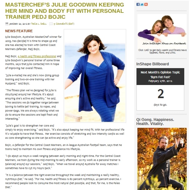 Reference – InShape NewsFlash (2011) Entertainment News Feature: Masterchef’s Julie Goodwin keeping Her Mind and Body Fit with Pedj Bojic, InShape NewsFlash December 2011, Australia.