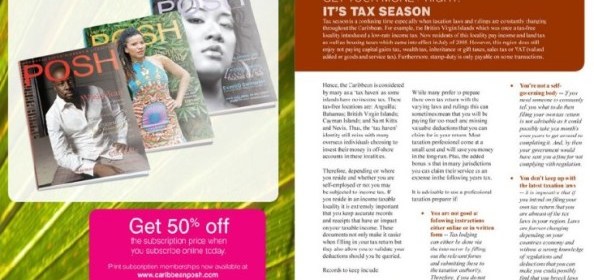 2-paged feature article | Caribbean POSH Magazine, St. Thomas US Virgin Islands: “I have worked with Tricia for some time now and she never ceases to impress. Quick, reliable, and fun to work with.” Janet Brin – Editor POSH