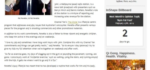 Online feature article | InShape NewsFlash, Australia: Tricia pitches story ideas, seeks out interviewees, then arranges and conducts the interviews for each article. Also, she researches background information for articles, locates images, and writes each of the news stories. Plus, Tricia manages a team of columnists, edits all news stories and then posts them to their relevant category on the news site. Overall, Tricia manages the site’s content and is responsible for the site’s look and feel.