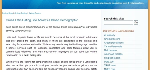 Online Dating Blog, U.S.A: Very professional, excellent writing Tricia. Project Summary – The creation of blog content that was keyword specific and SEO orientated. Project Type –